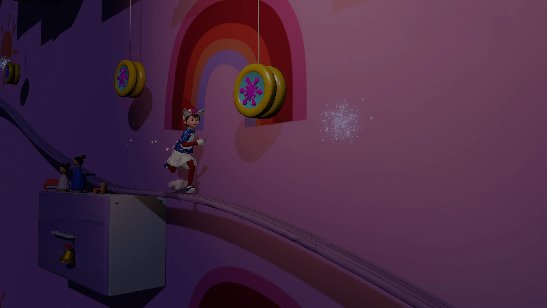 Dash, swing, and leap through training to become an “official Scout Elf”! Pick your most festive outfit and spread cheer as you explore every room, dodge obstacles, and add sparkle to each corner of the home.
