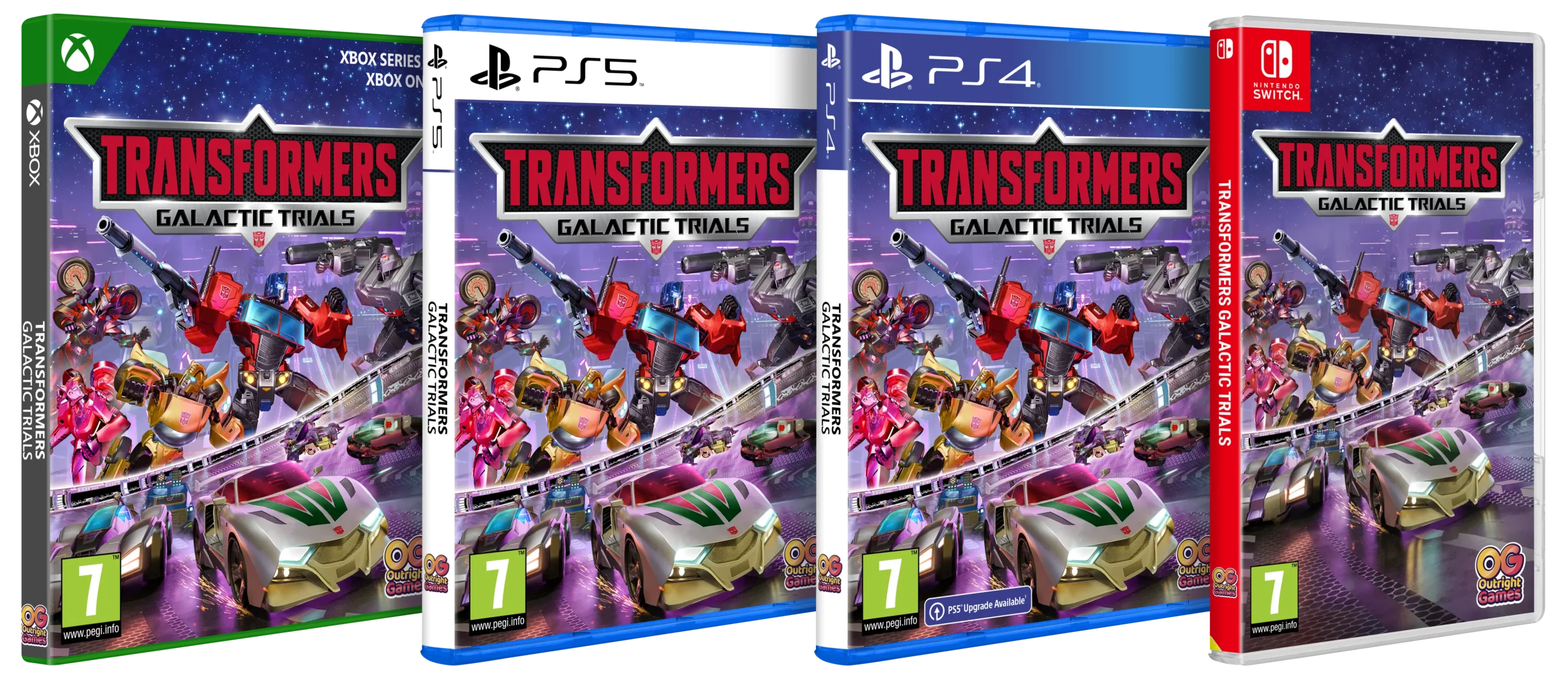 London, October 11th, 2024 – Today, Outright Games, the leading publisher of family-friendly interactive entertainment, in partnership with Hasbro, a leading toy and game company, officially launched TRANSFORMERS: GALACTIC TRIALS. Developed by 3DClouds, fans can play as the AUTOBOTS and DECEPTICONS in this unique racing action game with rogue-lite elements, as the hybrid gameplay transforms from traditional arcade racing to action-packed robot combat. TRANSFORMERS: GALACTIC TRIALS is out now on PlayStation 4®, PlayStation 5®, Nintendo Switch™, Xbox One, Xbox Series X|S, and PC.